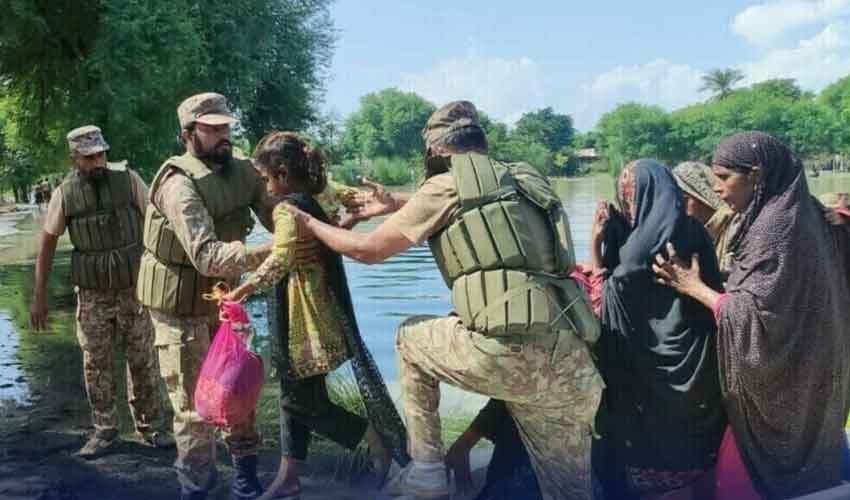 بونیر،سوات اورباجوڑ میں پاک فوج،فرنٹیئرکورکا فلڈریلیف آپریشن جاری ہے،پاک فوج کی ٹیمیں سیلاب سے متاثرہ اضلاع میں امدادی سرگرمیوں میں مصروف ہے،پاک فوج کےہیلی کاپٹرز میں راشن اور دیگر سامان مہیا کیا جا رہا ہے،سیلاب زدہ علاقوں سے لوگوں کو محفوظ مقامات پرمنتقل کیاجارہا ہے،پاک فوج کےمزید دستے بھی ریلیف آپریشن میں حصہ لینے کے لیے روانہ ہوگئے،تمام متاثرہ افراد کو بحفاظت ریسکیو کرنے اور محفوظ مقامات پرمنتقل کرنے تک آپریشن جاری رہے گا۔