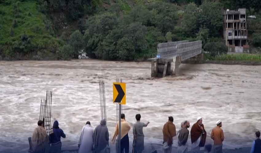آزادکشمیرمیں سیلاب کی تباہ کاریاں جاری ہیں،کئی اہم رابطہ سڑکیں اورپل ریلے میں بہہ گئے،متعدد علاقوں کا زمینی رابطہ منقطع ہوگیا،مظفرآبادکی دو یونین کونسلوں کا ملانے والا بٹدرہ پل سیلاب کی نظرہوگیا،پل بہہ جانے سے ایک لاکھ آبادی کا دیگر علاقوں سےرابطہ منقطع ہوگیا،علاقے میں اشیا خورد و نوش و دیگر سامان پہنچانے میں مشکلات کا سامنا ہے